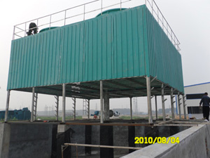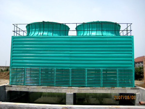 FN系列方形逆流式玻璃冷卻塔是機械工業部第四設計研究院設計的節能型新產品。該產品應用了四院獲得的"節能型玻璃鋼冷卻塔”專利,特別是冷卻塔風機配有變扭矩離極雙速電機,當氣溫較低時(例如晚上),電機開低速,冷卻塔噪聲可低3-5dB(A)。