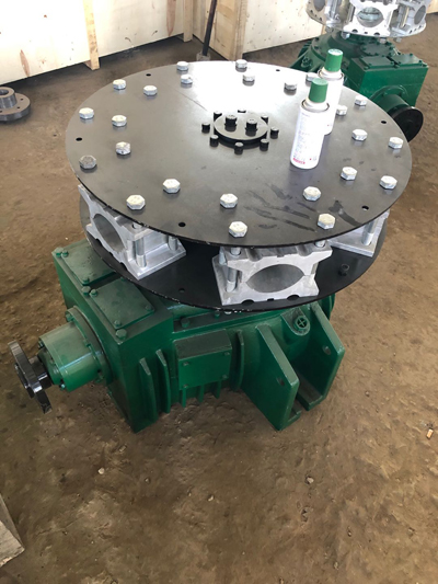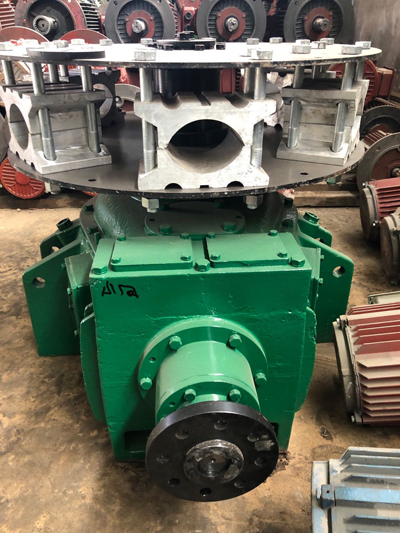 WB型循環水冷卻塔風機專用減速機,是臥式外傳動減速機。該機采用傳動軸將電機置于風筒外邊,改善了電機工作環境。設有塔外油標及加、放油管路、球閥,可不停機檢查油位,及時加油。電機一般用6極或6/8級等多速電機,也可配4極電機。齒輪傳動采用一對傘齒輪和一對斜齒圓柱齒輪,齒面均為硬齒面;潤滑方式為浸油、甩油;傳動軸都經過動平衡試驗且兩端均為彈性套柱銷聯軸器,保證了傳動的平穩性,緩沖減振性好,適合塔內環境。當環境溫度較低潤滑油接近凝固時,基若要啟動須加熱融化后方可運行。